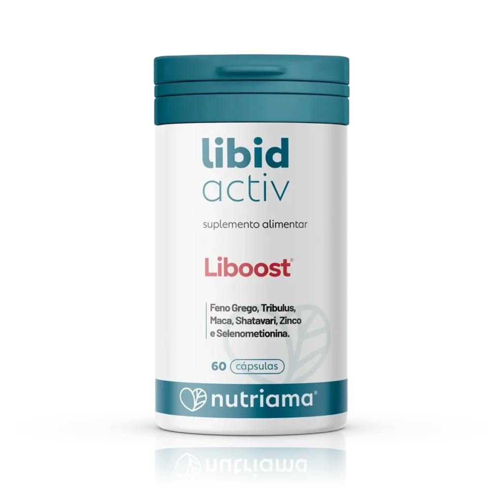 Suplemento alimentar com: Liboost®, Feno Grego, Tribulus, Maca, Shatavari, Zinco e Selenometionina.