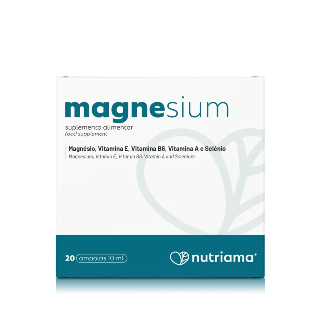 Suplemento alimentar com: Magnésio, Vitamina E, Vitamina B6, Vitamina A e Selénio.