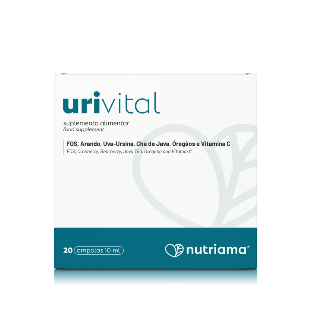 Suplemento alimentar com: FOS, Arando Vermelho, Uva-Ursina, Chá de Java, Orégão e Vitamina C.