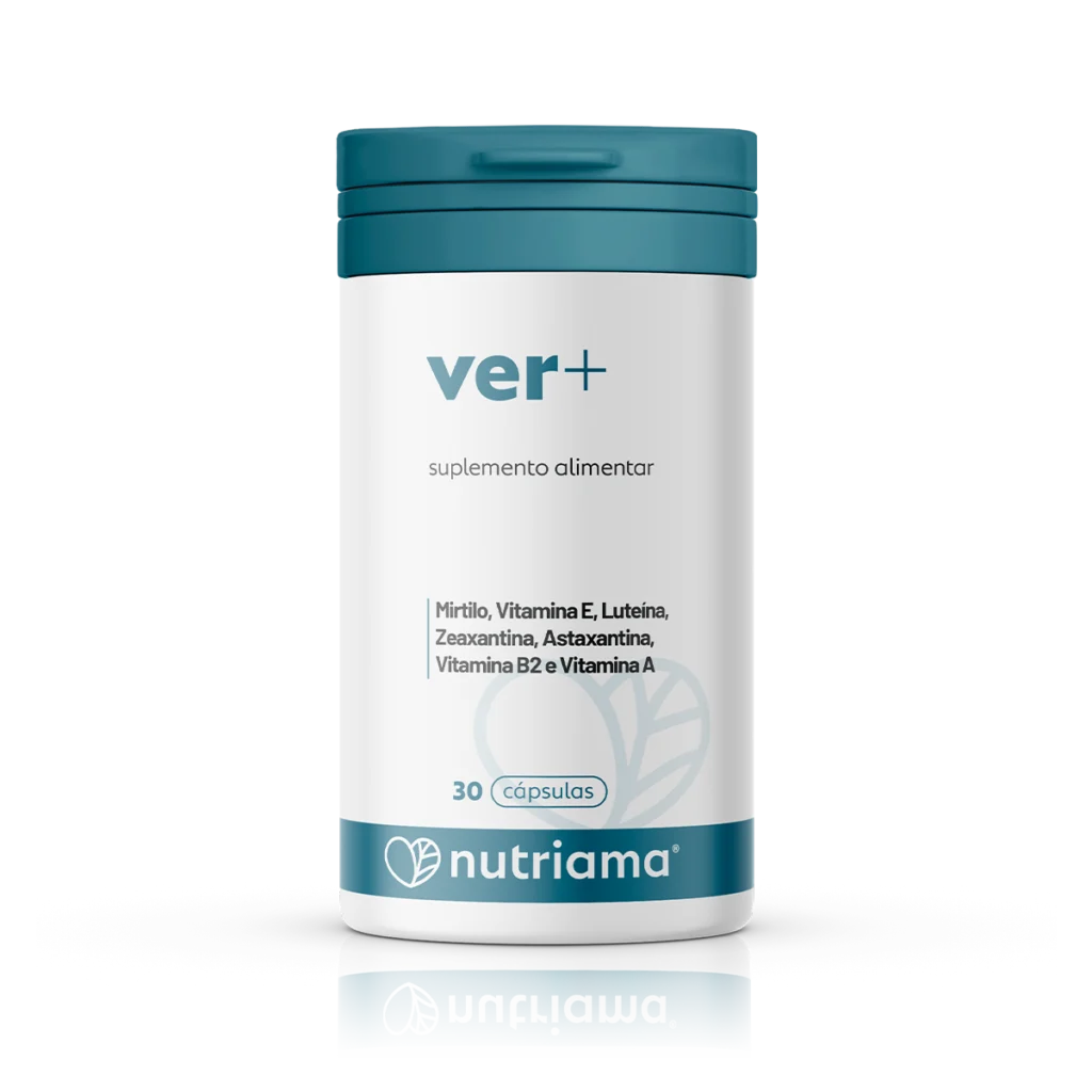 Suplemento Alimentar com: Mirtilo, Vitamina E, Luteína, Zeaxantina, Astaxantina, Vitamina B2 e Vitamina A.